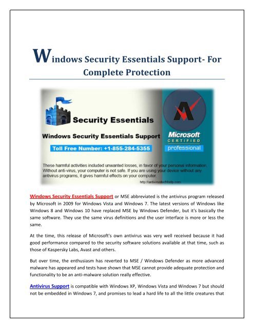 What is Microsoft Security Essentials? Why is Microsoft Security Essentials no longer available? Windows 7 is no longer supported and availability of new installations of Microsoft Security ... Microsoft Security Essentials Download for Free - 2022 Latest ... Microsoft Security Essentials (MSE) is a free antivirus program from Microsoft. It provides real-time protection against different types of harmful software, including computer viruses, spyware, rootkits, and trojan horses.