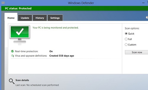 How to Use the Built-in Windows Defender Antivirus on ... To fire up the Windows Defender Security Center, just hit Start, type "defender," and then select "Windows Defender Security Center." In the Windows Defender Security Center window, switch to the "Windows Defender" tab (the shield icon) and then click the "Scan history" link. Advertisement