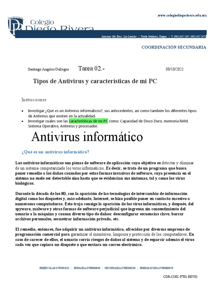 Tipos de Antivirus | Tecnología - Informática Antivirus identificadores. Este tipo de antivirus cumple con la función de identificar cualquier tipo de amenaza que quiera acceder a nuestro sistema, o que ya se encuentre agazapado de antes. Para cumplir con su tarea, este tipo de antivirus constantemente analizan el sistema de nuestra computadora con el fin de encontrar secuencias de códigos compatibles con malwares y otras amenazas. › tipos-de-virusTipos de virus de computadoras - Tecnología + Informática Tipos de virus de computadora. A continuación se detallan los distintos tipos de virus de computadoras hasta ahora conocidos: Virus de Boot. Uno de los primeros tipos de virus conocido, el virus de boot infecta la partición de inicio del sistema operativo. El virus se activa cuando la computadora es encendida y el sistema operativo se carga. Tipos de Antivirus Informáticos | Clasificación y funciones Tipos de antivirus según la finalidad. Hemos visto qué tipos de antivirus hay según la amenaza que pretenden combatir, pero hay otra clasificación posible y es en función de la finalidad. Hay tres opciones: preventivos, reconocedores y descontaminantes. Veamos más en detalle cada uno de ellos: 10 ejemplos de antivirus informático De acuerdo con el daño que tenga o pueda tener tu equipo, existen tres (03) tipos de antivirus: Los preventores, que son el escudo y el sistema de vigilancia del equipo. Su finalidad es anticiparse a algún virus que pretenda entrar a la maquina y de esa forma, previene sus ataques al sistema operativo.