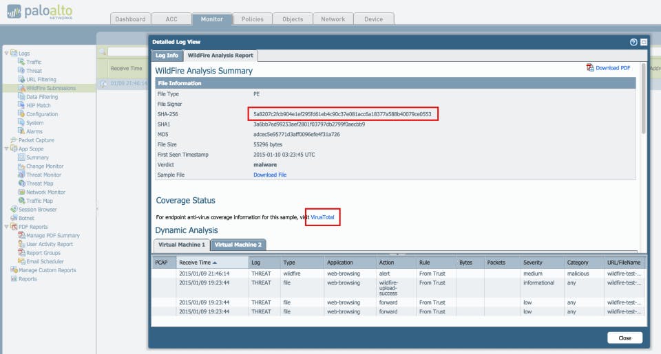 Palo alto antivirus wildfire action